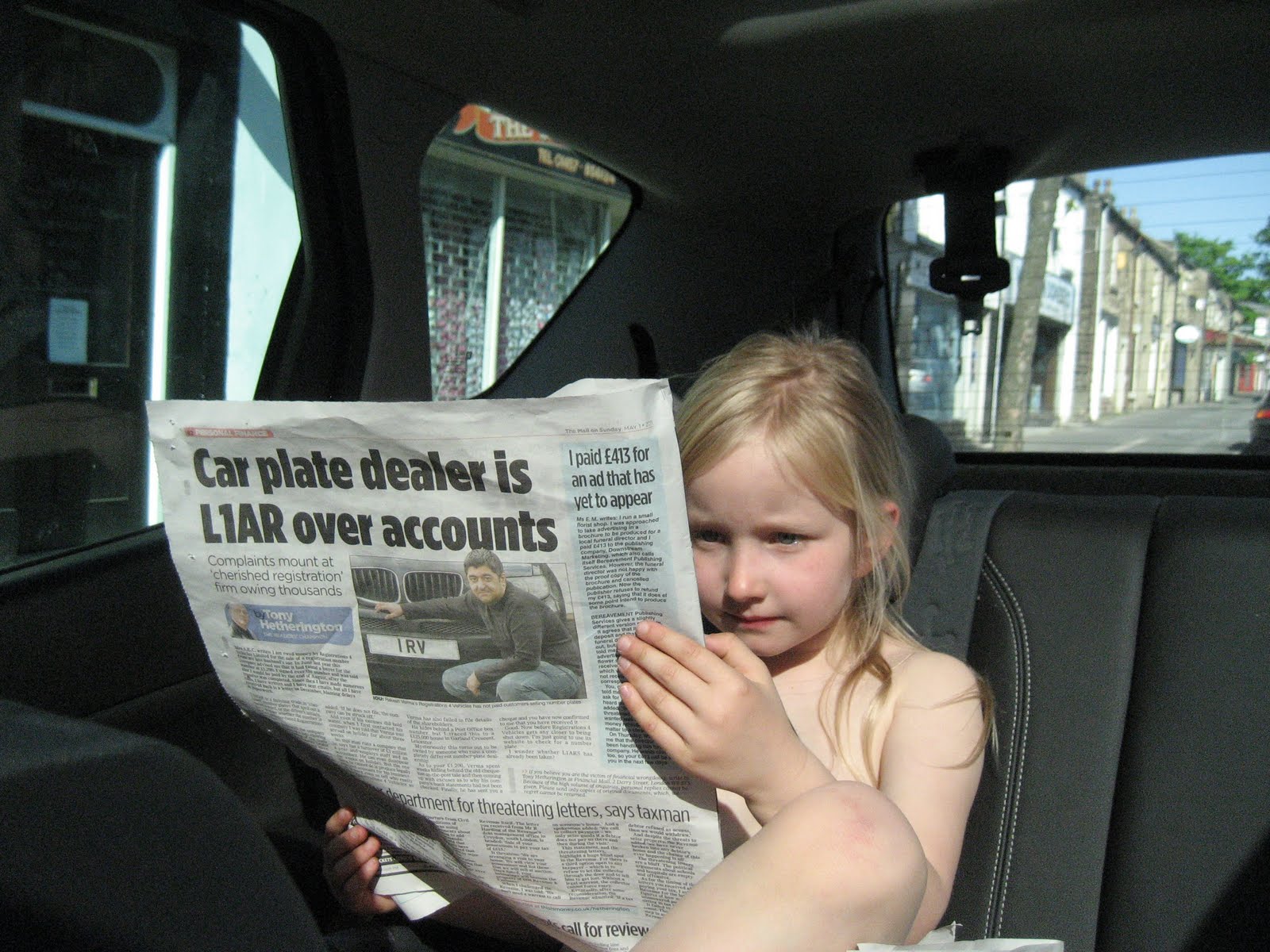 Xyla at right is reading the latest about Pipa, "Her Royal Hottie" and Harry. She is displaying the girls' latest approach to driving comfort - undies only.